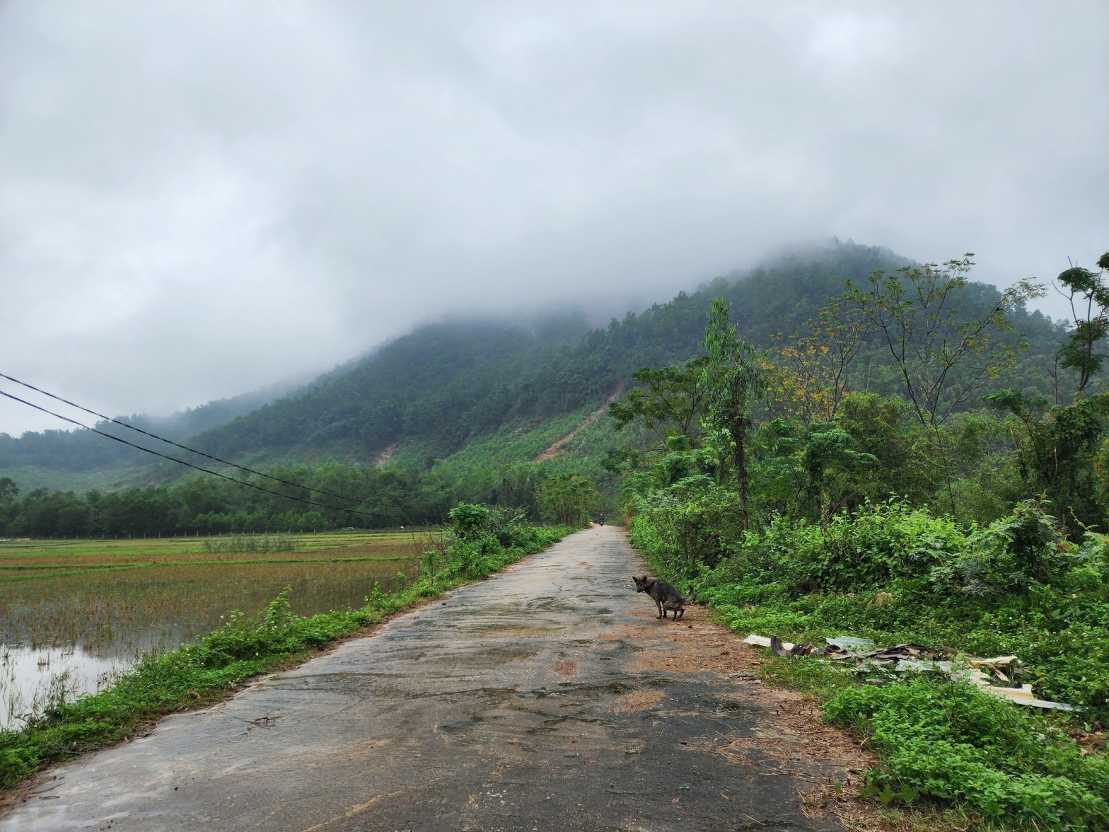 It poured the day he saw the old professor. The dike ran along the right bank of Sông Đáy between Ba Thá and Vân Đình. A turbid and muddy trail. Human traffic going with and against each other. A struggle condensed into a fleeting moment of bashfulness, shame and brimming joy along with the image of a cold and unending long trek, pounding and drowning in the bleary white dusty rain the time they had bumped into each other. Remnants of dying villages in the distant.